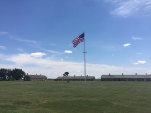 I had not planned on staying in Larned at all. This stretch of Kansas has long patches of nothing. Towns that are really just crossroads and miles and miles without any kind of service. It is nothing as bad as the desert–there is water–but it is pretty solitary. I had a great time riding up and over the Pawnee Watershed hills and later made a stop of at the NPS Fort Larned park, because, history. Storms the night before had disrupted my sleep, but even so it seemed warmed out. At 1:30 it turned out it was 104, so that explains the warm feeling. When I rode into Fort Larned I was pretty glad of the shade and cold water. When I rode into Larned proper about 7 miles later the allure of a town was too much to resist. Not that I have been really roughing it all that much. Kansas is dotted with good facilities every 60 miles or so. Over the past few night I stayed in the great gym in Scott City and camped out next to the old High School in Bazine thanks to the nice family that now own it, live in it, and welcome cyclists. But between these wonderful watering holes there is not much. It seems that most riders follow the same path and land on the same lily pads.