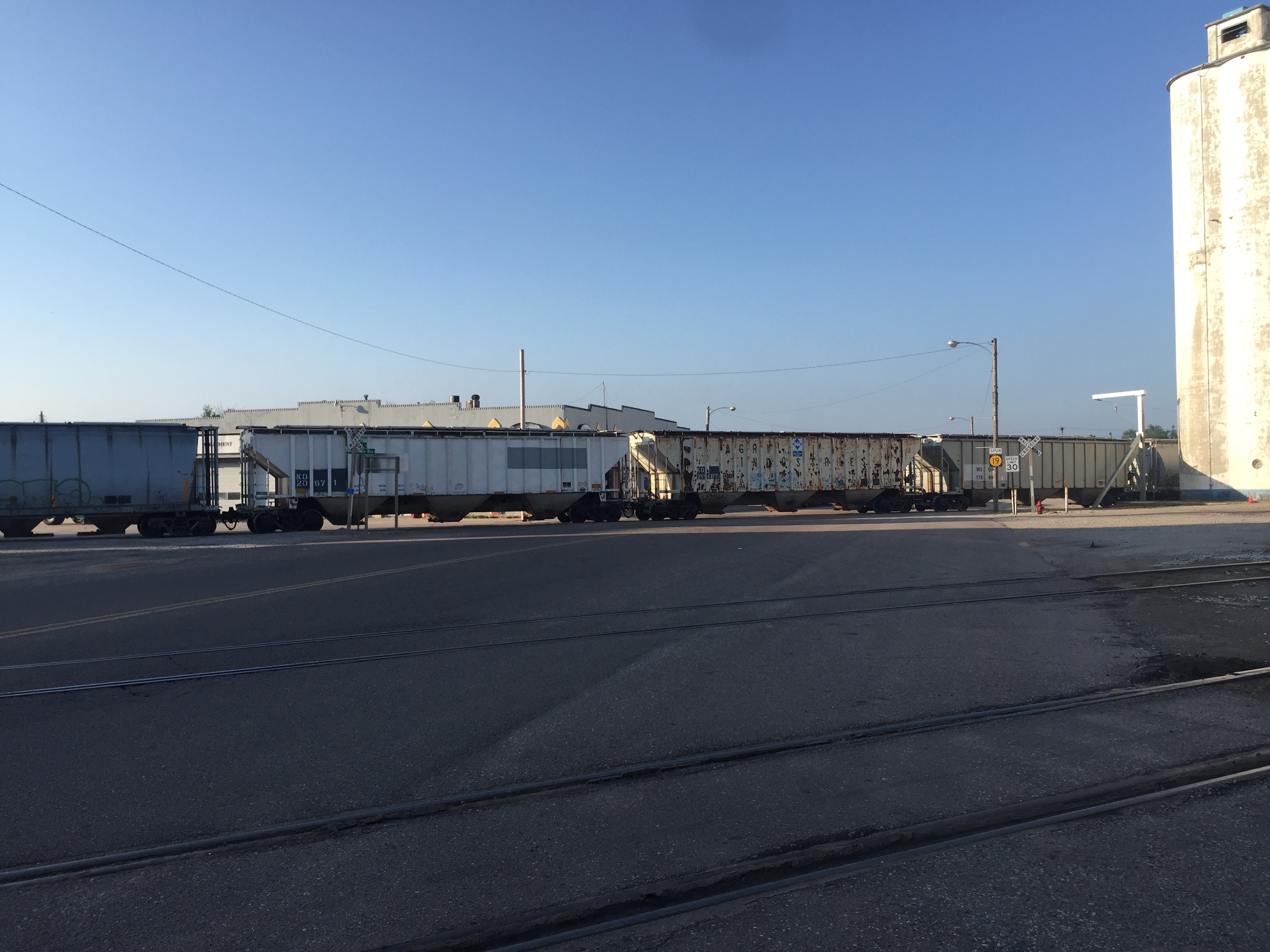 When I got to Larned I learned of the afforbale motel right close by and I succumbed. Soon, I had grocery shopped, cooked, eaten, bathed, and was falling asleep by 9pm. Up by 5 or so today, granolaed, and back on the road soon thereafter. I went a few miles south of town stopped only by a small traffic jam caused by a loading grain train blocking the Main Street. South of town the route runs along Rt 19–a fairly narrow road graced, as it happens, with no shoulder. The white line more or less marks the edge of paving. The next thing I noticed was that the speed limits was 65–and that struck me as a bit  fast even though the road is arrow straight. Right away a roadrunner ran across my path. I think I saw one once before in Arizona but not as close as this. Yesterday I saw a dead coyote by the side of the road, but I have little evidence to implicate this particular bird. The charm of RT 19 I think is that it is lightly trafficked, and indeed, I think only one or two cars passed me before the white minivan. His mirror hit me mid-arm and did not even knock me down. I saw the van speeding off hugging the white line. He made no effort to stop–even though the impact had slammed the mirror back on the door. The road was empty so the minivan had all the room in the world to avoid me. I sceamed and fumed to no avail. I tried to flag down the next car, although I am not sure just why–I think I was just panicked a bit. At any rate, the car just pulled into the oncoming lane and ignored me. Some people are awful. I collected my wits for a bit and made sure I was not actually hurt. I was facing  about 50 miles of nothing eastward, and so I thought it best to head back to Larned in case there was a real problem. Only on my way back did it dawn on me to call the police–hit and run is still a crime. Of course I was probably too late for the sheriffs to have found the van. Nevertheless, once the cars had made it past the train, the sheriffs past me rushing down Rt 19. One doubled back and check in. Deputy Perez suggested I see the EMS team. At first I did not think it was called for, but as we talked I decided to let him call them. Sometimes adreneline can cover pain and I did not want to trust my judgement. The EMS guys did not see anything worrying, and soon Deputy Perez gave me a lift back to the motel–Room three left just as I left it. I filled out some report forms and went back to sleep to silence the anxiety.